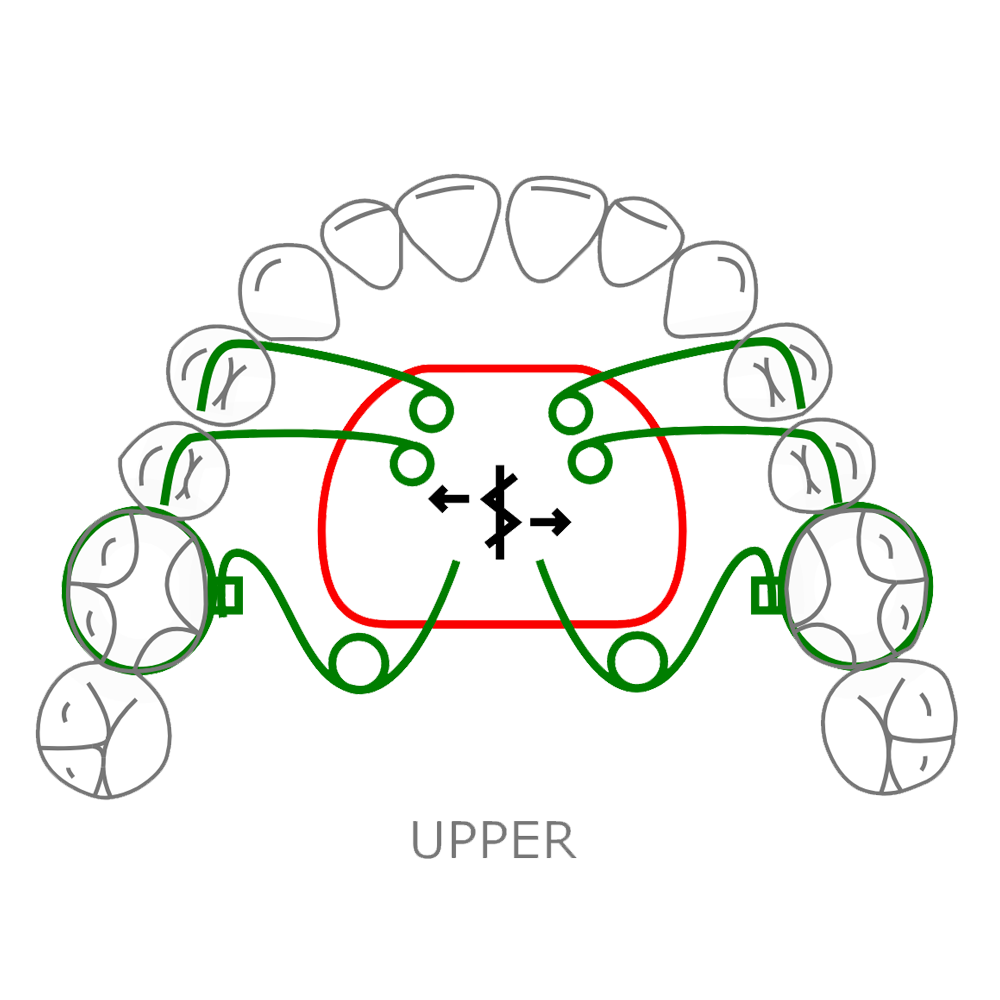 The pendex appliance is designed to perform a dual function: it uses a central expansion screw to rapidly widen the upper jaw (palatal expansion), and it uses wire springs to simultaneously distalize (move backward) the upper molars. This combination effectively corrects crowding and, in some cases, flaring of the upper front teeth.