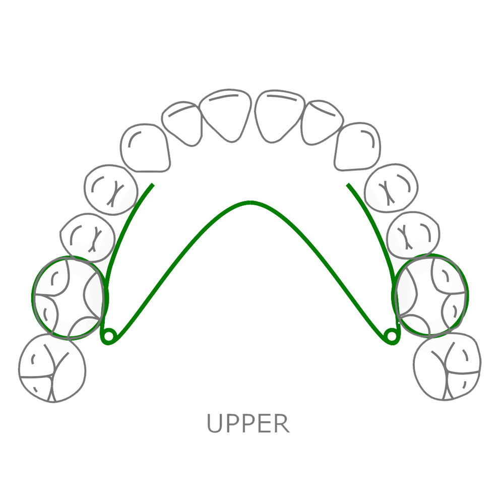 Designed to widen the lower arch of the mouth without affecting tongue movement or posture. It also helps to upright the molars. It is made of preformed stainless-steel wire and has two active helix coils. It’s attached to molar bands and has lingual wires that extend to the cuspids.